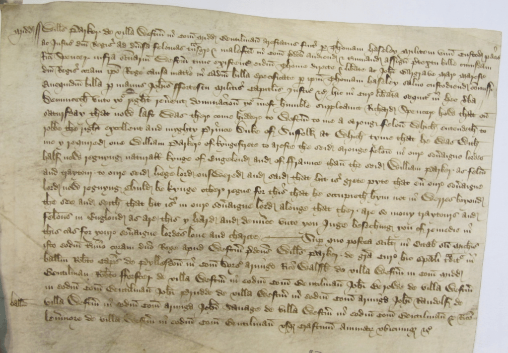 In 1448, on the eve of civil war, a sanctuary seeker at Westminster made strange allegations of a treasonous plot being hatched in the sanctuary precinct. Richard Spencer, “clerk, merchant, and gentleman” of London, took sanctuary in 1448 at Westminster Abbey. From within the sanctuary, he submitted a written accusation of treason against gentleman and Westminster townsman William Parker. Spencer alleged that a “strong felon” had come to him in the sanctuary and said that he intended to rob the duke of Suffolk (William de la Pole, Henry VI’s right-hand-man). Spencer went to Parker (who had some official capacity, unspecified) and suggested the felon be arrested. Parker not only refused, but (Spencer claimed) cast aspersions on the king himself while doing so.
